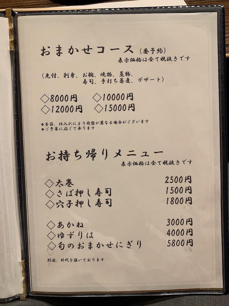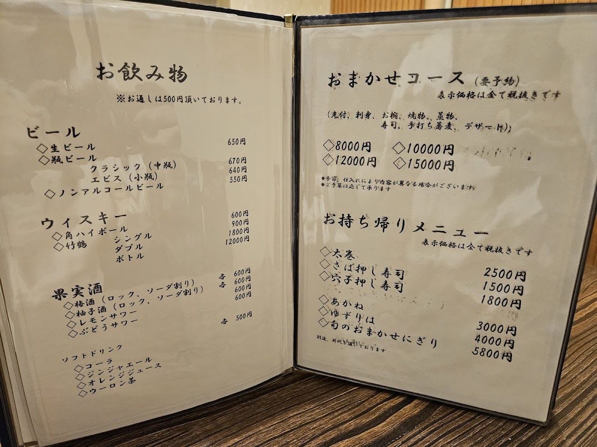 At Sushi Minato, the menu feels like a carefully paced omakase journey that highlights Hokkaido’s seasonal seafood with restraint and confidence. The experience begins with 食事前のセッティング, setting a calm, focused tone that prepares the palate for what follows. The sushi course anchors the meal, with Sushi presented in clean, precise forms and standout pieces like いわしの握り寿司, where the sardine’s natural richness is balanced by rice temperature and subtle seasoning. Delicacies such as あん肝 add depth with their creamy, ocean-forward intensity, while やいたかつお brings a smoky edge that contrasts nicely with lighter bites. Texture and freshness are emphasized through items like タコ and 蛸, each prepared to highlight tenderness rather than chew, and 平目雲丹のせ, which layers delicate flounder with the sweetness of sea urchin for a luxurious finish. Warm dishes are used sparingly but effectively; 白子の茶碗蒸し offers a silky, comforting pause, and 甘鯛の若狭焼き showcases crisp skin and refined grilling technique. The menu continues to impress with カワハギと肝醤油, a bold pairing that leans into umami without overwhelming the fish, and のどぐろ, prized for its fatty elegance and gentle sweetness. To close the meal cleanly, 食事のシメのざる蕎麦 refreshes the palate, while 卵焼き provides a softly sweet, technically precise final note that reflects the chef’s control. Overall, the menu is cohesive and disciplined, focusing on ingredient quality and balance rather than excess, leaving a clear impression of craftsmanship and seasonality.